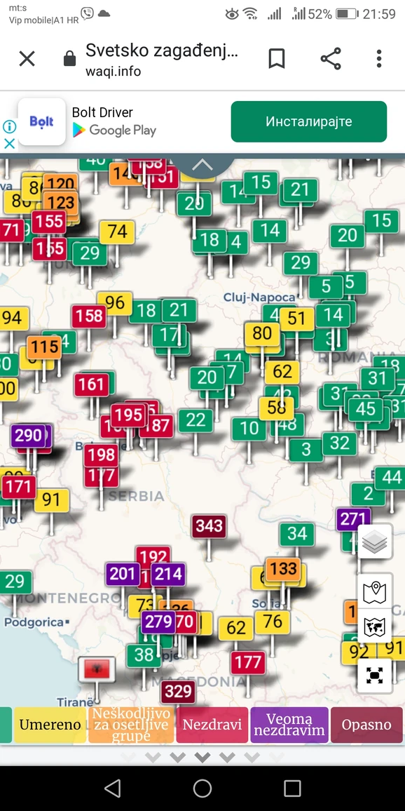Загађење се током ноћи смањило, па је сада нешто мање (217, по најновијим подацима), али Београд се у међувремену на листи најзагађенијих већих светских градова са шестог попео на 5. место.