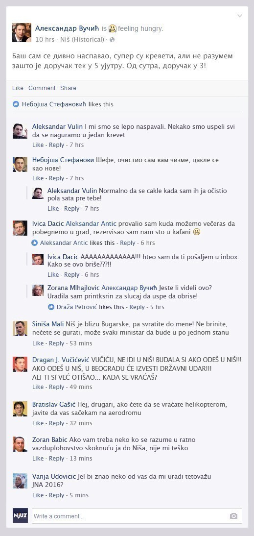 Њуз: Вучићев Фејсбук статус из касарне у Нишу